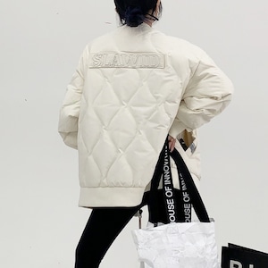 立体的なダイヤキルティングが印象的な中綿ビッグブルゾン。
