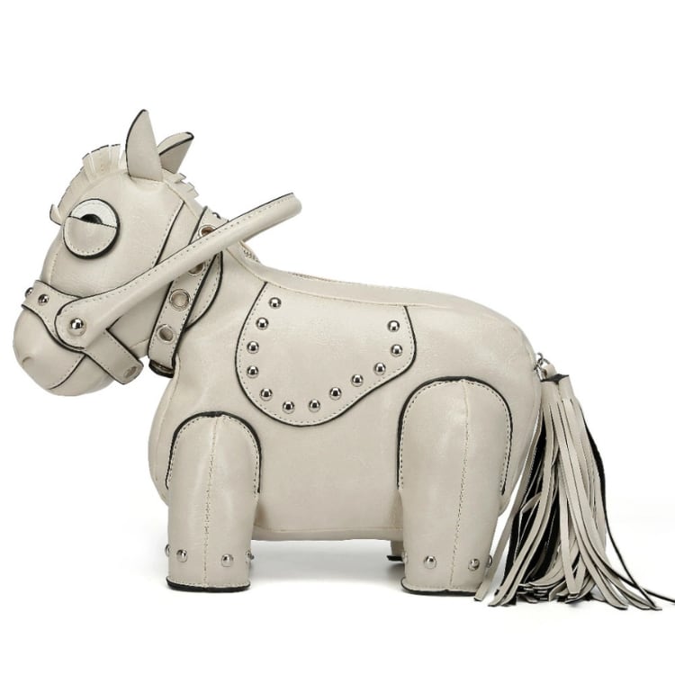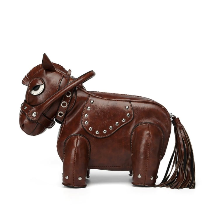 馬をモチーフにした立体デザインが特徴のクロスボディバッグです。細部まで立体的に仕上げられており、コーディネートのアクセントとして活躍します。ベルト部分の金具使いや縫製のラインが視覚的なポイントになり、デイリーにもイベントにも合わせやすいアイテムです。