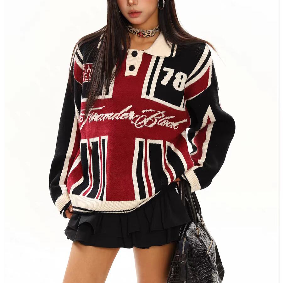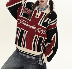 ポロカラーとボタン仕様を組み合わせたニットトップス。