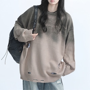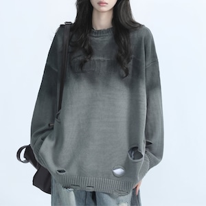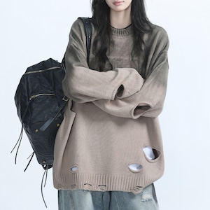 ダメージ加工ルーズニットトップス ◆2col L00468