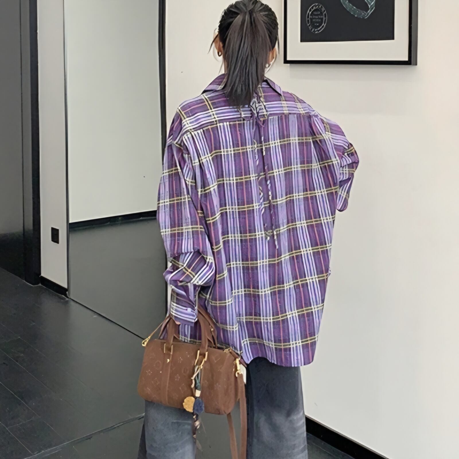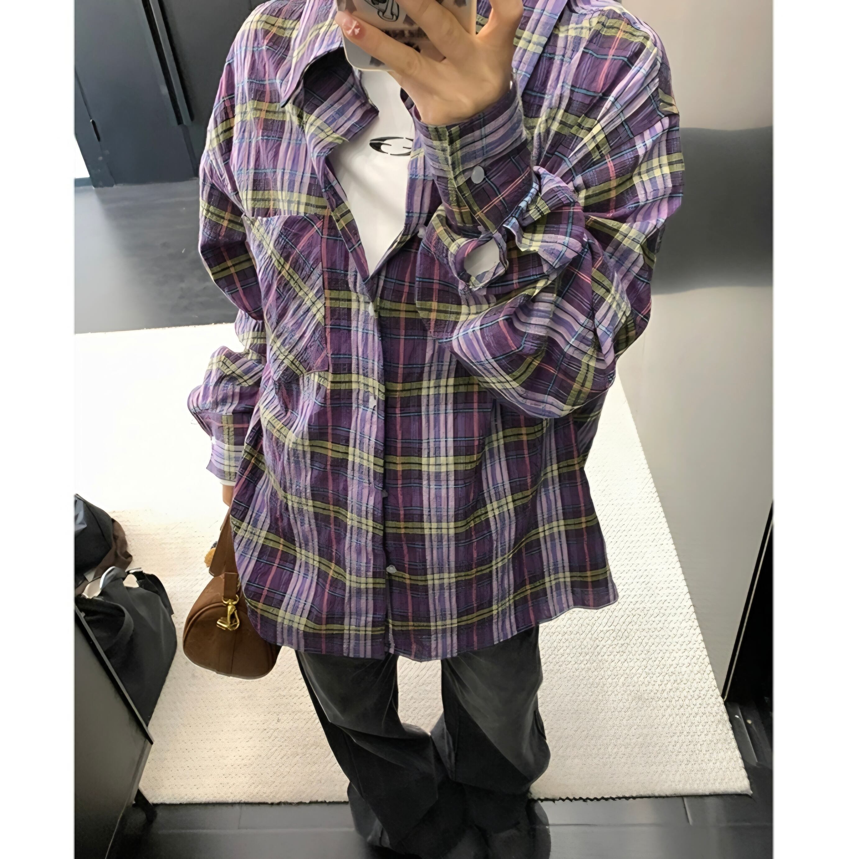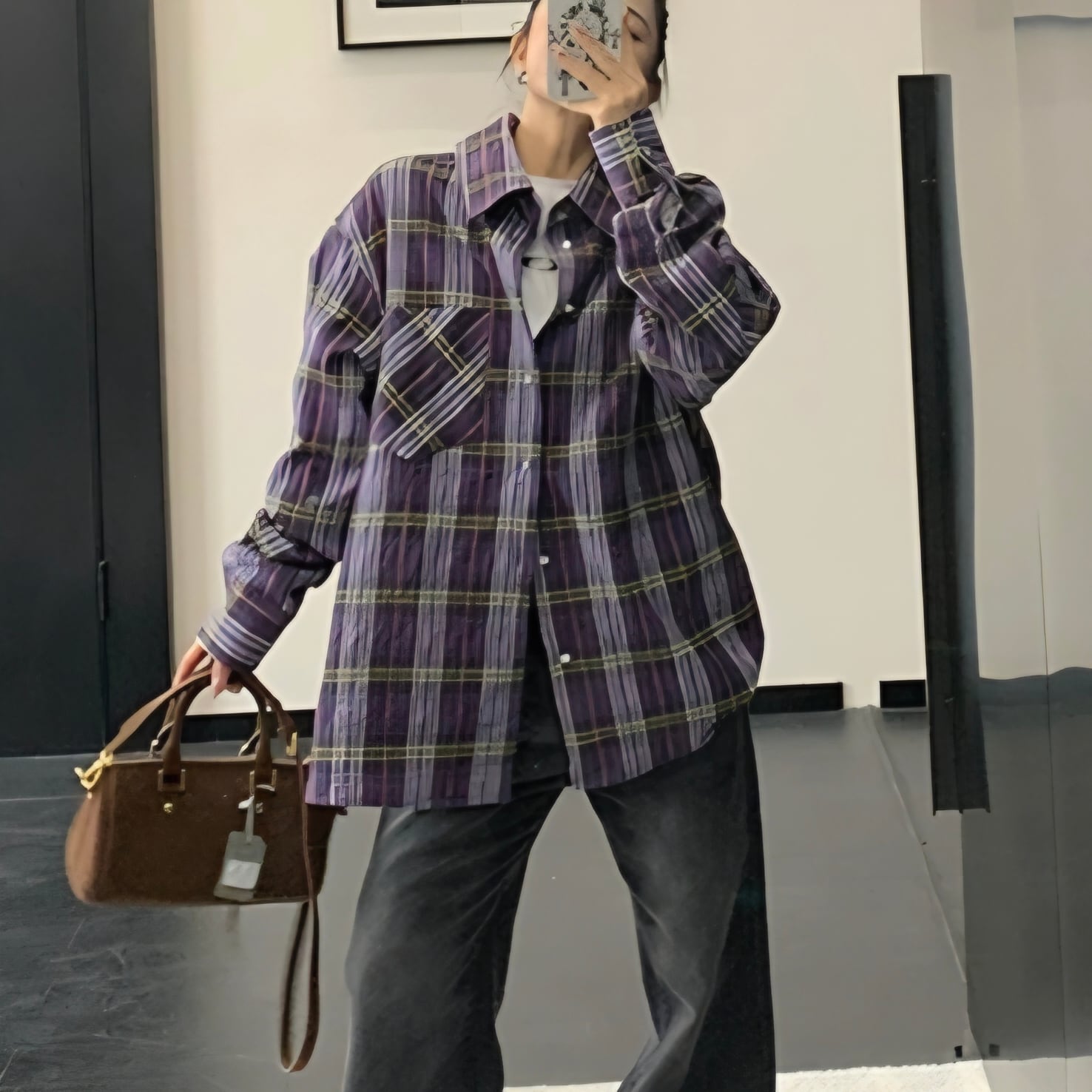 チェック柄 ボタンフロント 長袖シャツ L00473