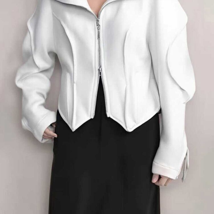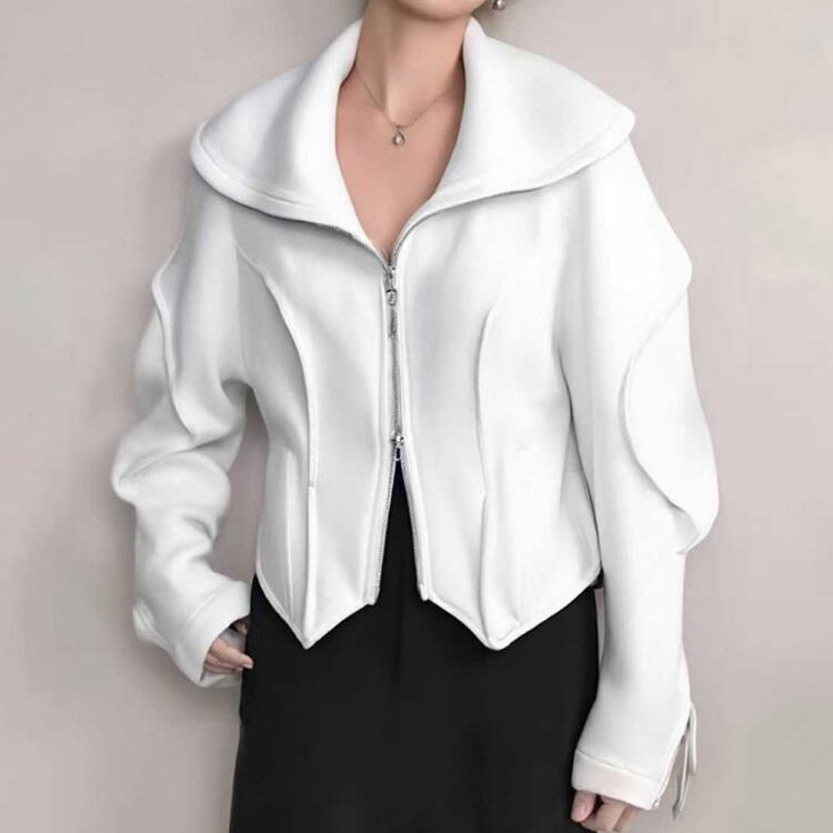 トレンド感あふれるショート丈ブルゾン。シンプルなデザインながらも、特徴的な襟のデザインが目を惹きます。