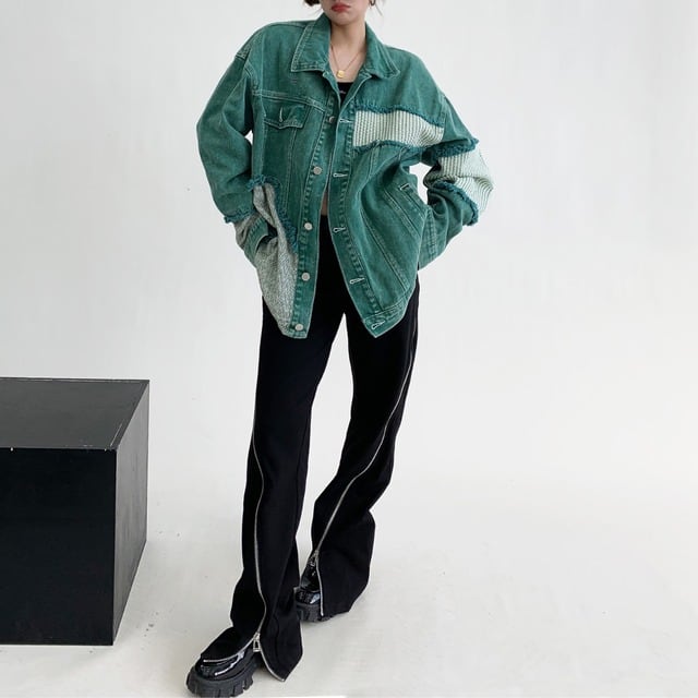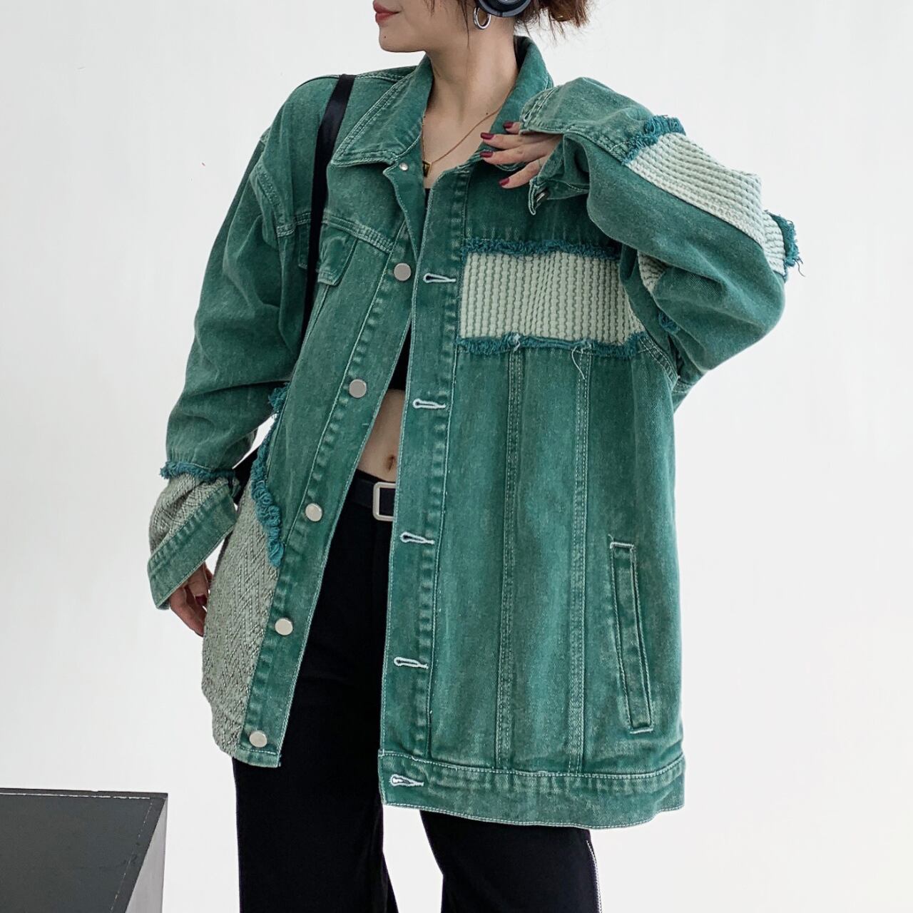 パッチワーク オーバーサイズ 長袖 デニムジャケット ◆col