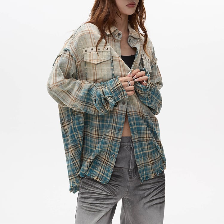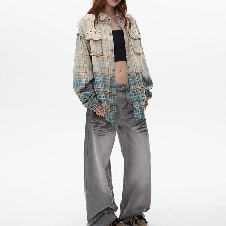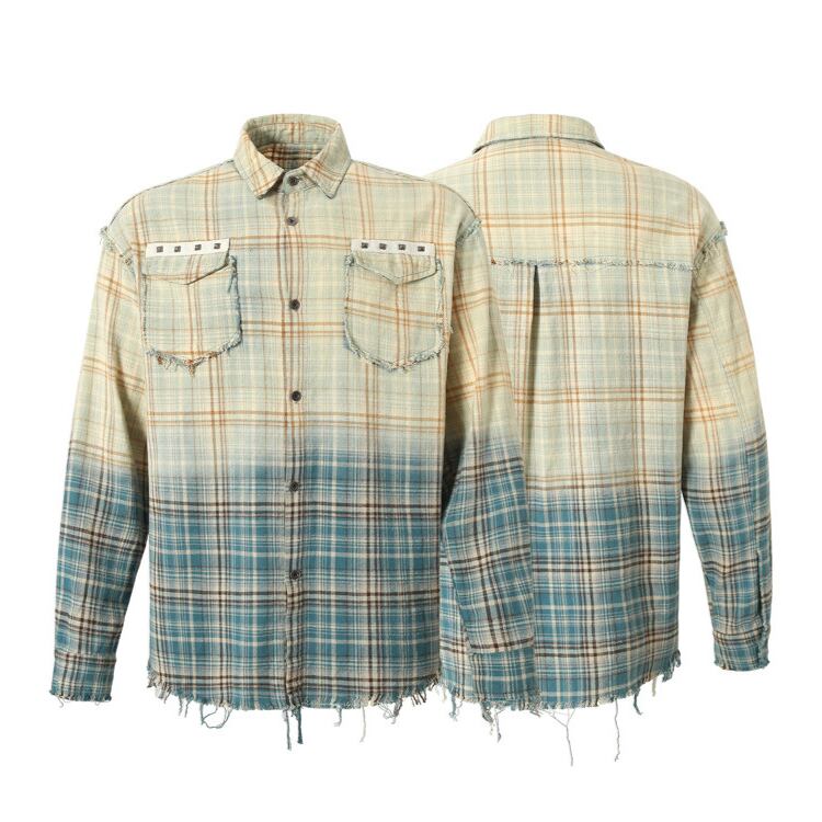 グラデーション チェック柄 シャツカラー シャツ L00481