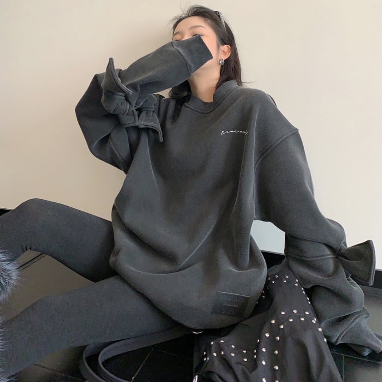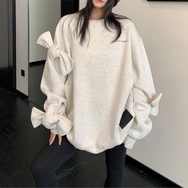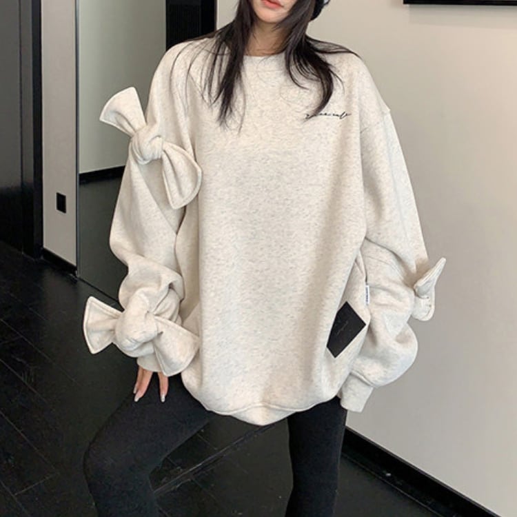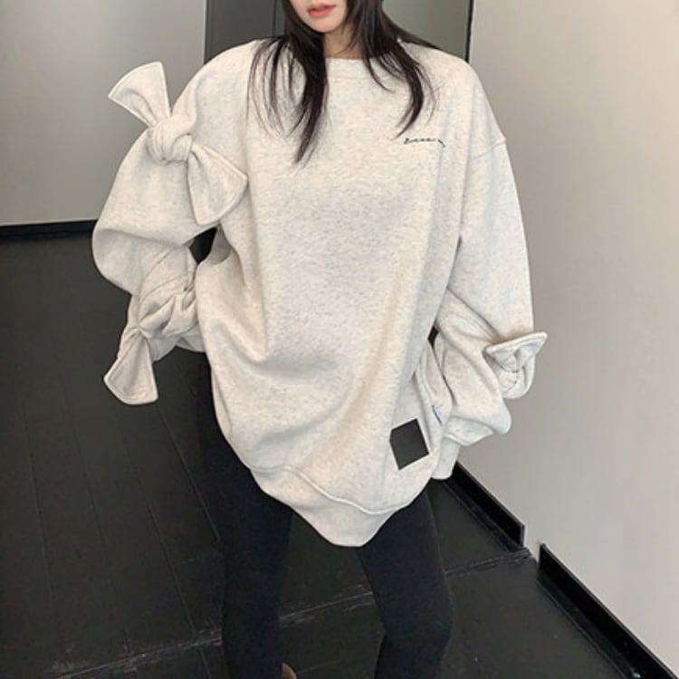 袖に立体リボンを施したデザインスウェット。