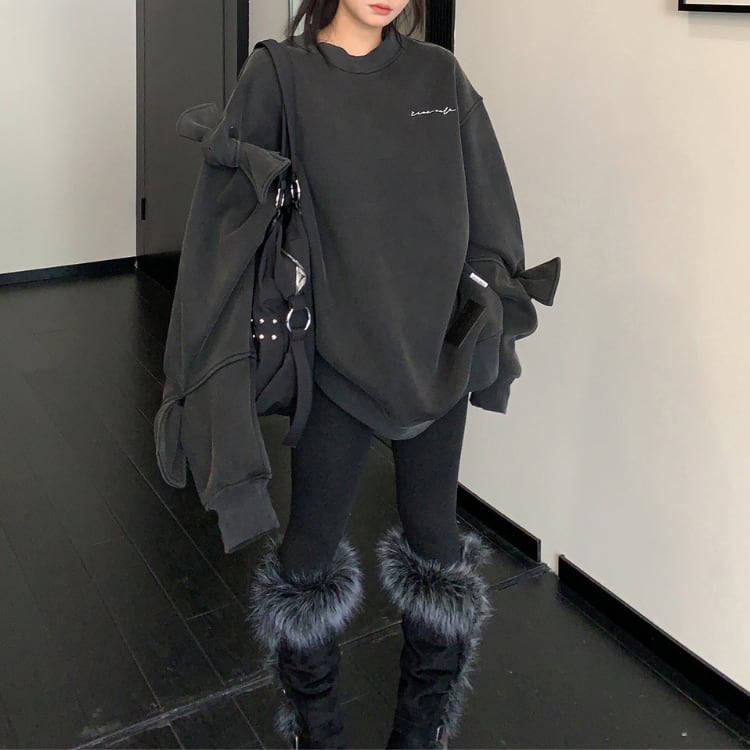 袖リボンオーバースウェットトップス ◆2col L00489