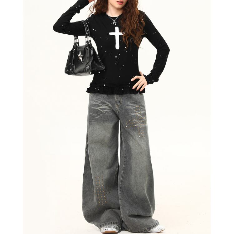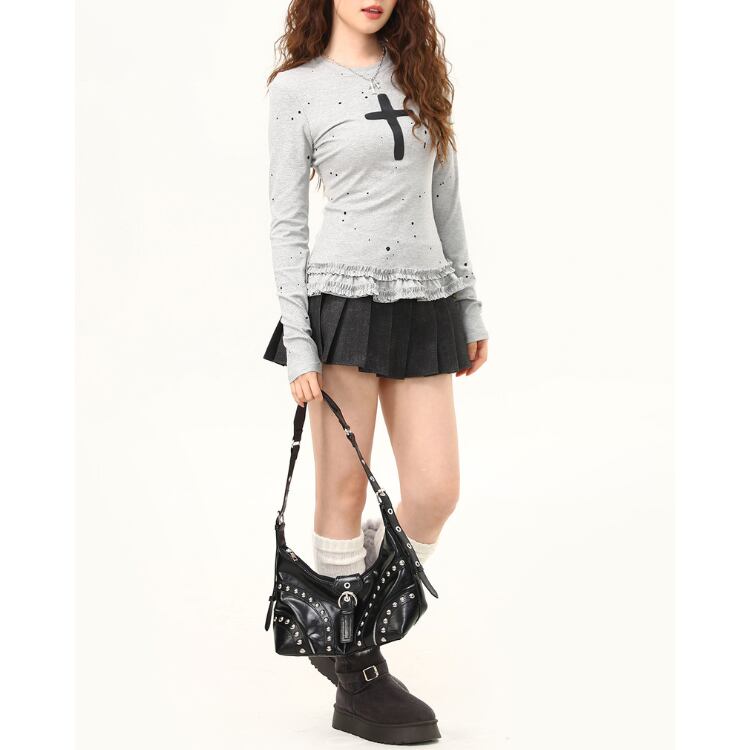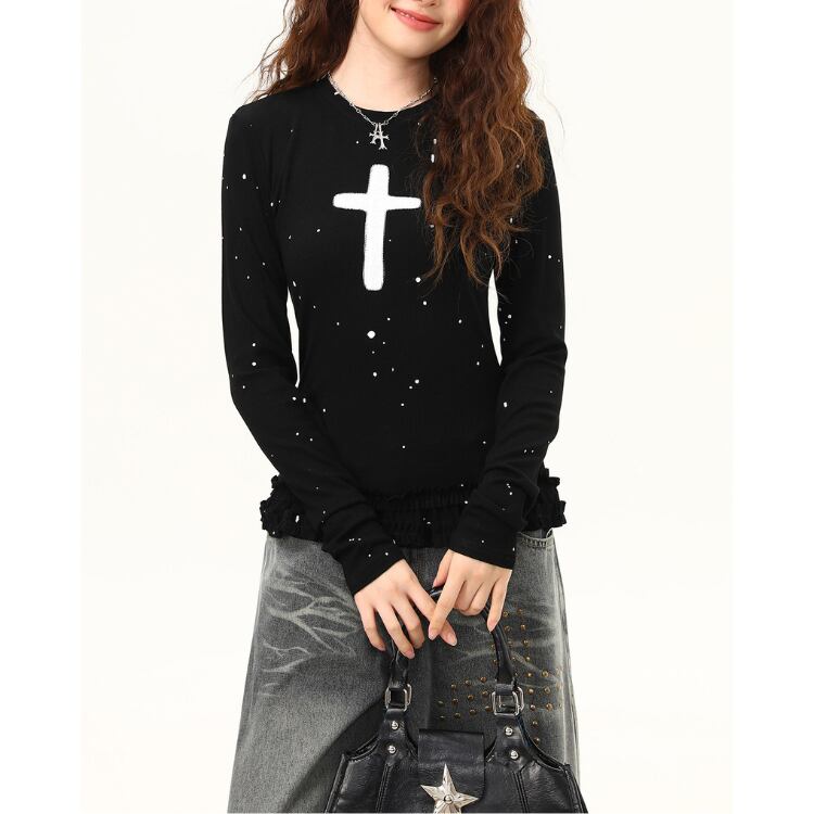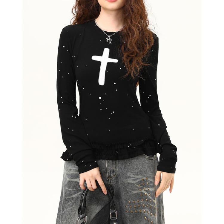 フリル 長袖 スタンダード Tシャツ ◆2col L60001