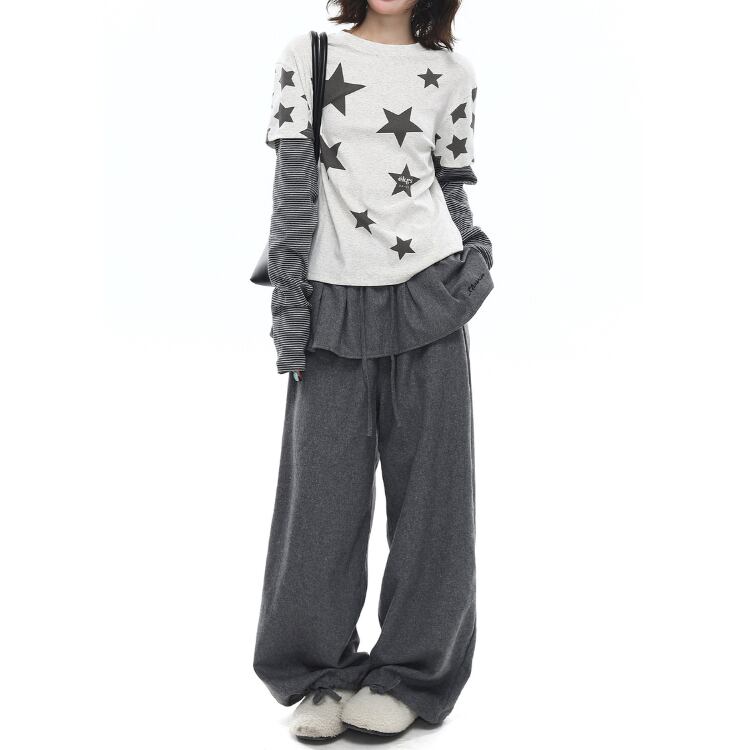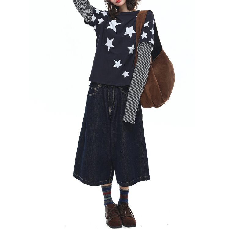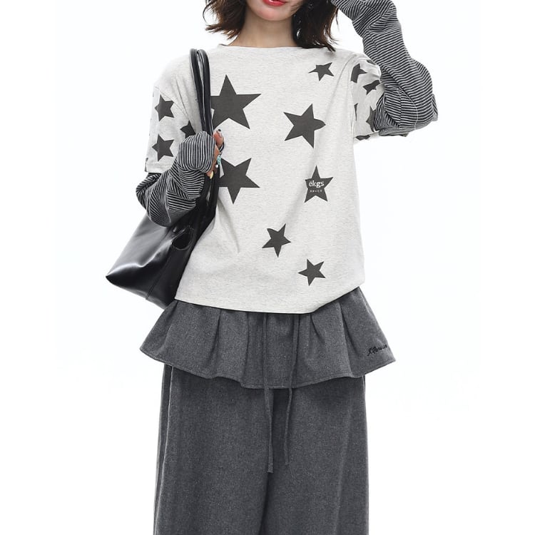 星柄 長袖 ドッキング カットソー ◆2col L60003