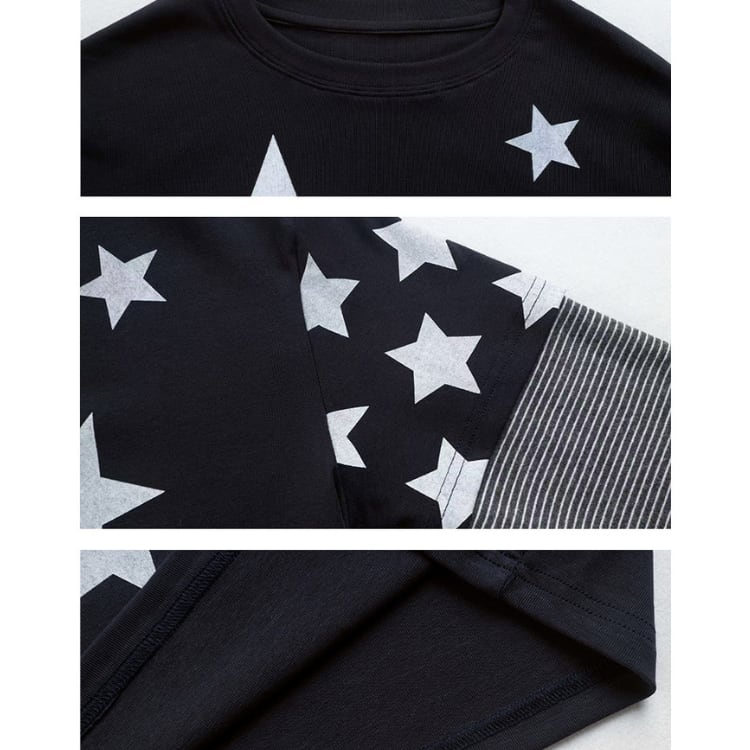 遊び心あふれる星柄デザインが特徴的な長袖カットソー。