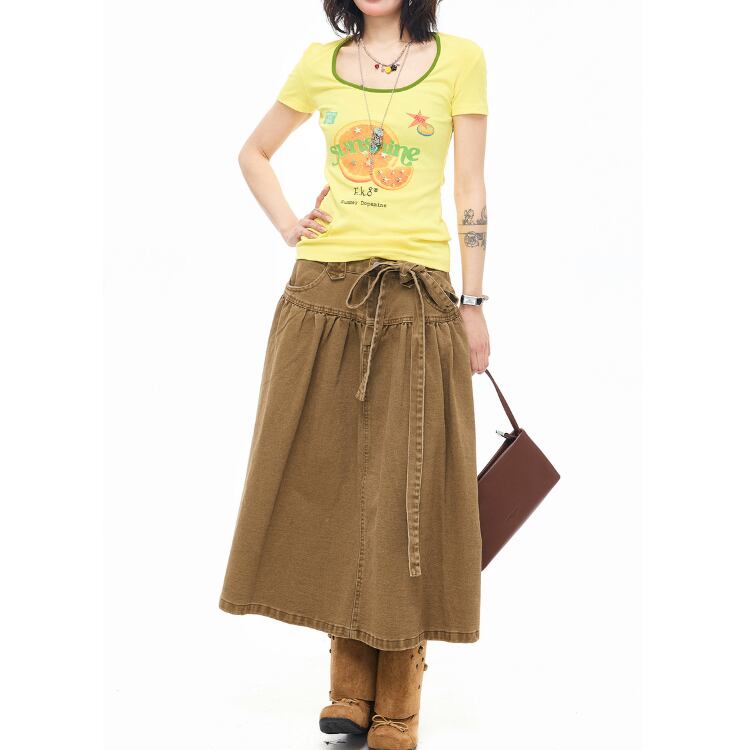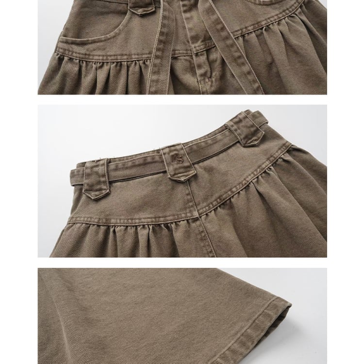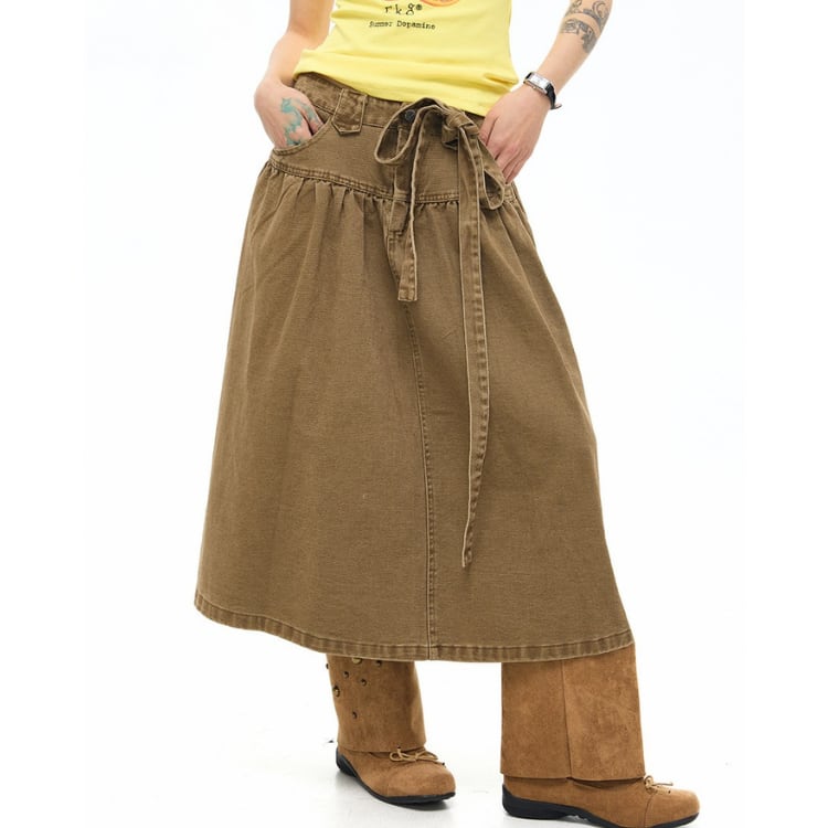 ベルト付き ギャザー Aライン ミモレ スカート L60005