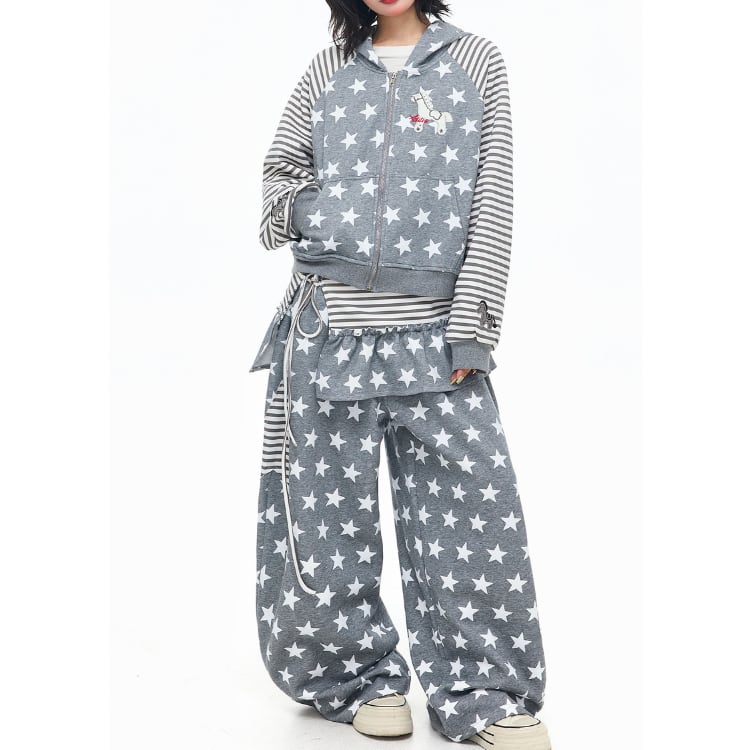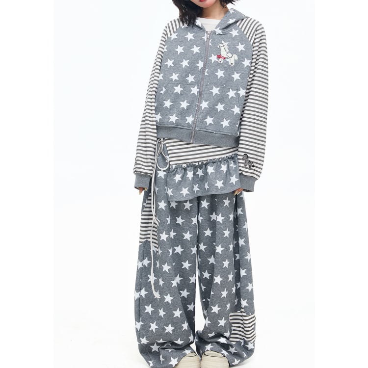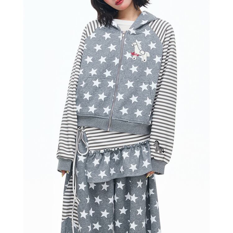 星柄とボーダー柄を組み合わせた、遊び心あふれるジップアップパーカーです。