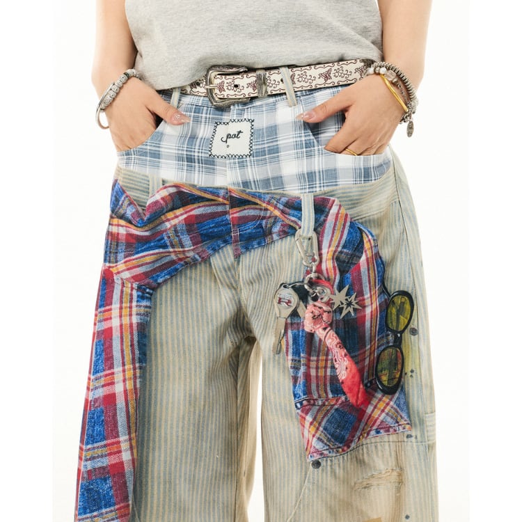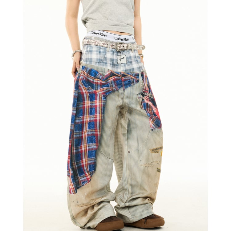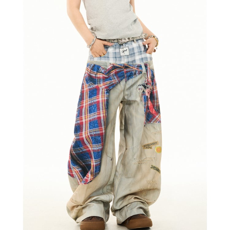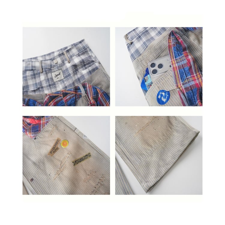 存在感のあるパッチワークデザインが特徴的なフルレングスパンツ。