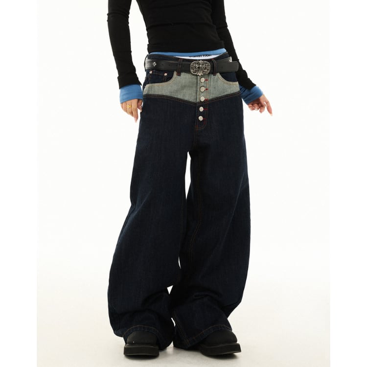 ボタンフロント ワイド フルレングス デニムパンツ L60018