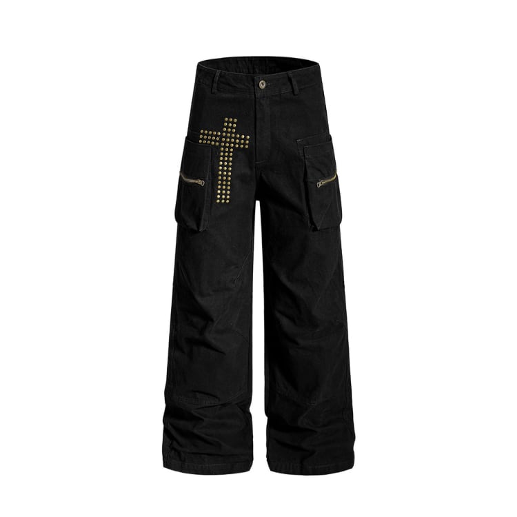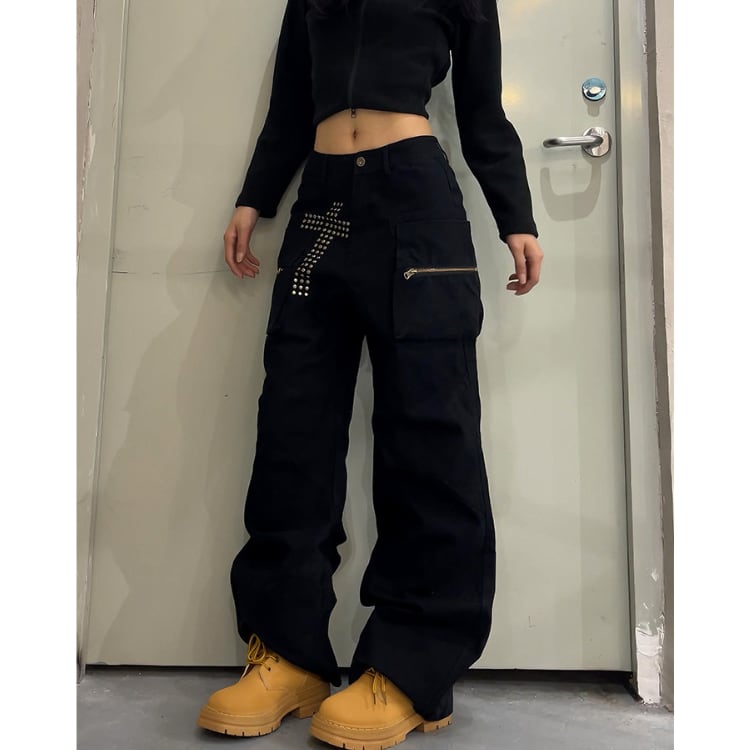 ジップポケット ワイドレッグ フルレングス パンツ ◆2col L60025