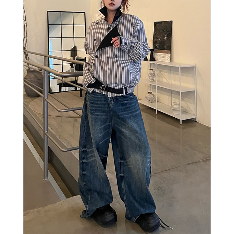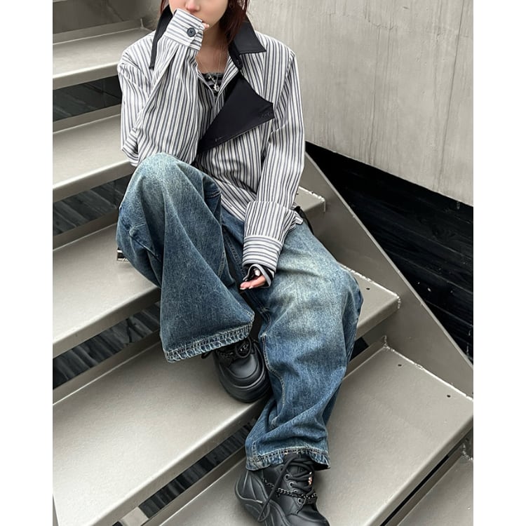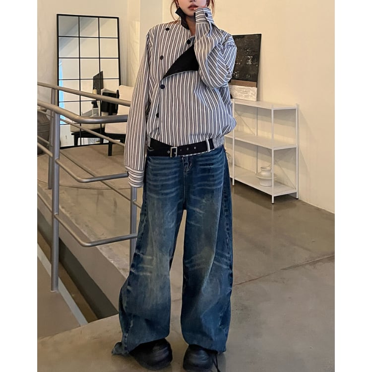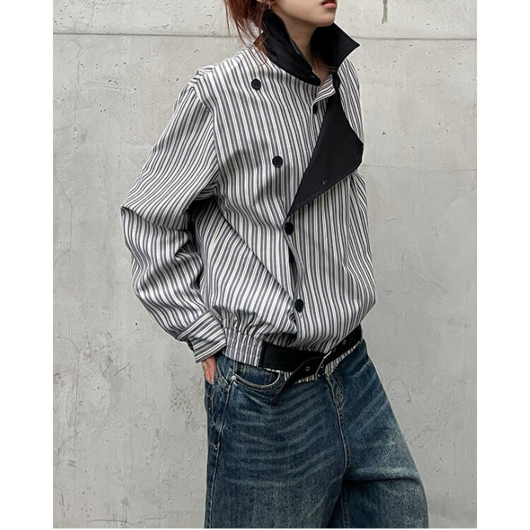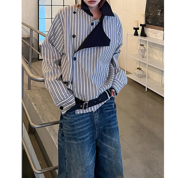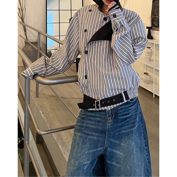 アシンメトリーデザイン ストライプ シャツジャケット L60026