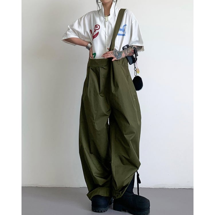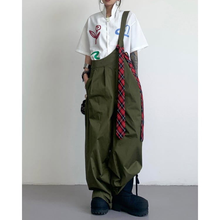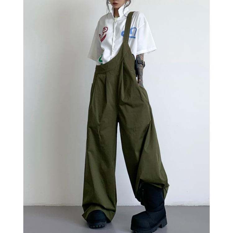 パッチポケット付き ワイド フルレングス サロペット L60028